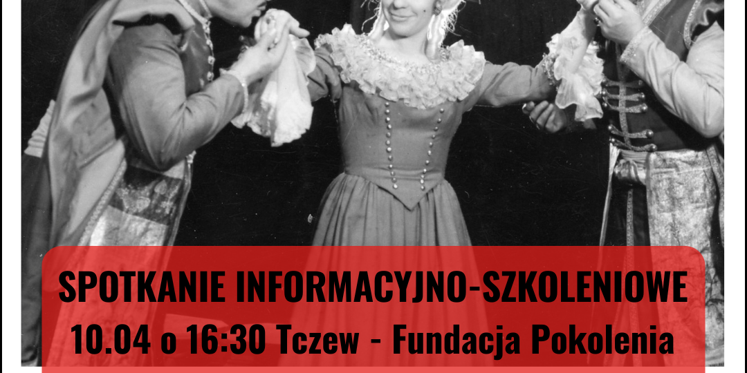 W związku z naborem zapraszamy na spotkanie informacyjno-szkoleniowe 10 kwietnia (czwartek) w godz. 16:30-19:30 w Fundacji Pokolenia przy ul. Obrońców Westerplatte 6 w Tczewie. Podczas tego seminarium będzie można porozmawiać o zasadach konkursu oraz uzyskać odpowiedź na wszelkie pytania, ale również dowiedzieć się o możliwościach finansowania działań na rzecz kultury.