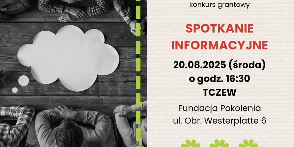 25.08 (poniedziałek) o 16:30 TCZEW – Fundacja Pokolenia (ul. Obrońców Westerplatte 6)